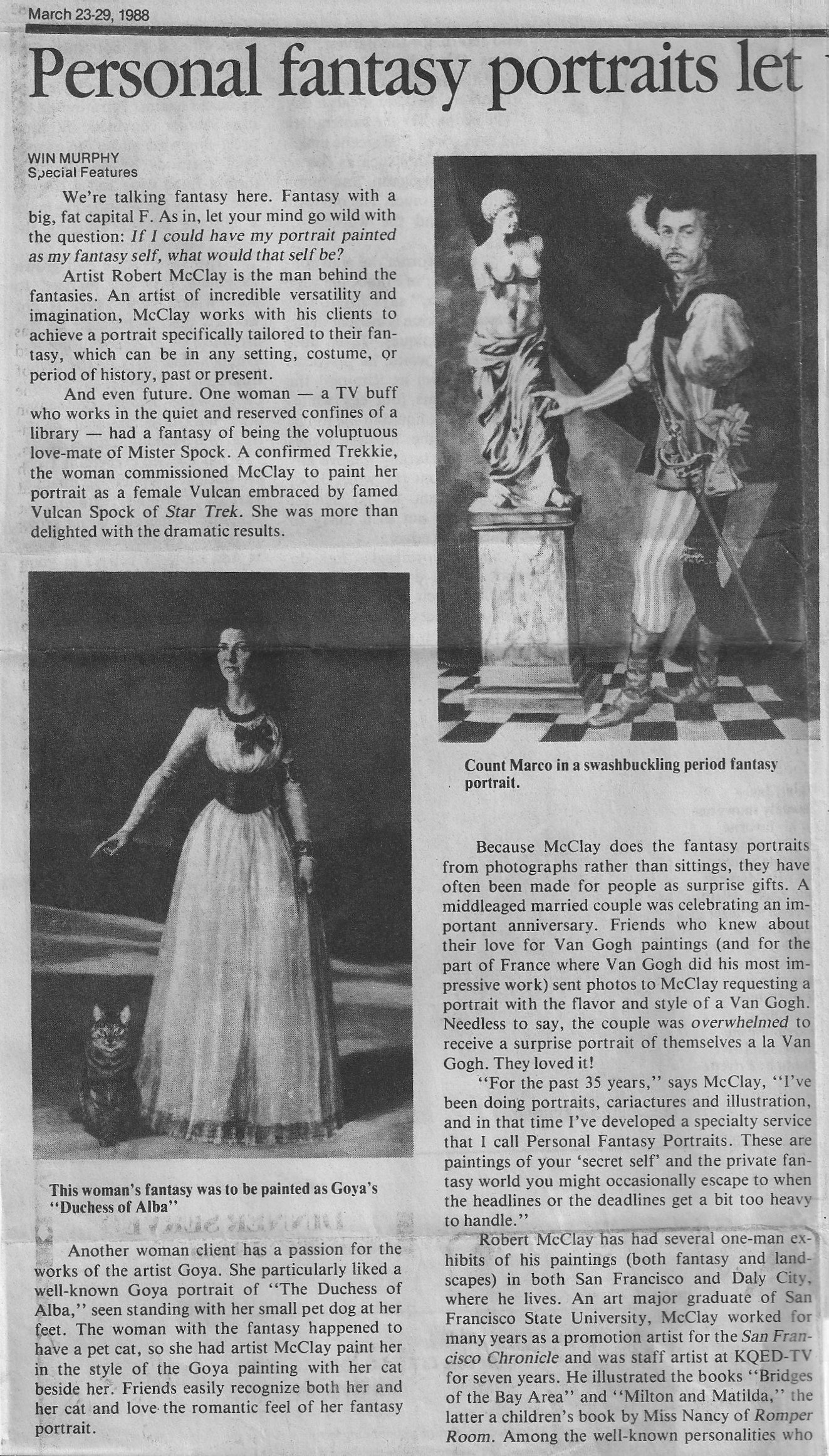 Oya Johnson, “The Fantasy World of Robert McClay”, Magical Blend, April, 1989